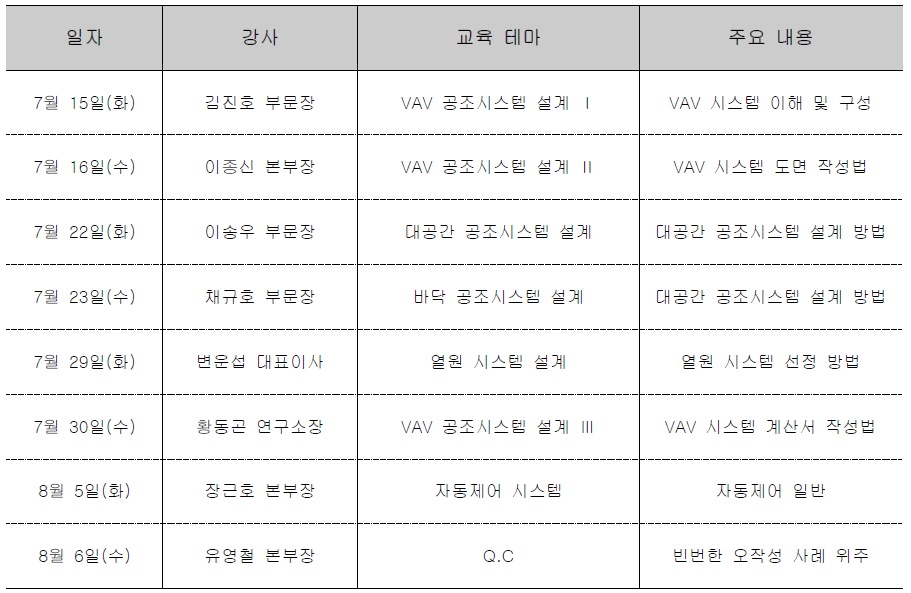 당사는 지난 2025년 7월 15일부터 8월까지 6일까지 책임이상 임원들을 대상으로 내부 직무교육을 실시히였으며